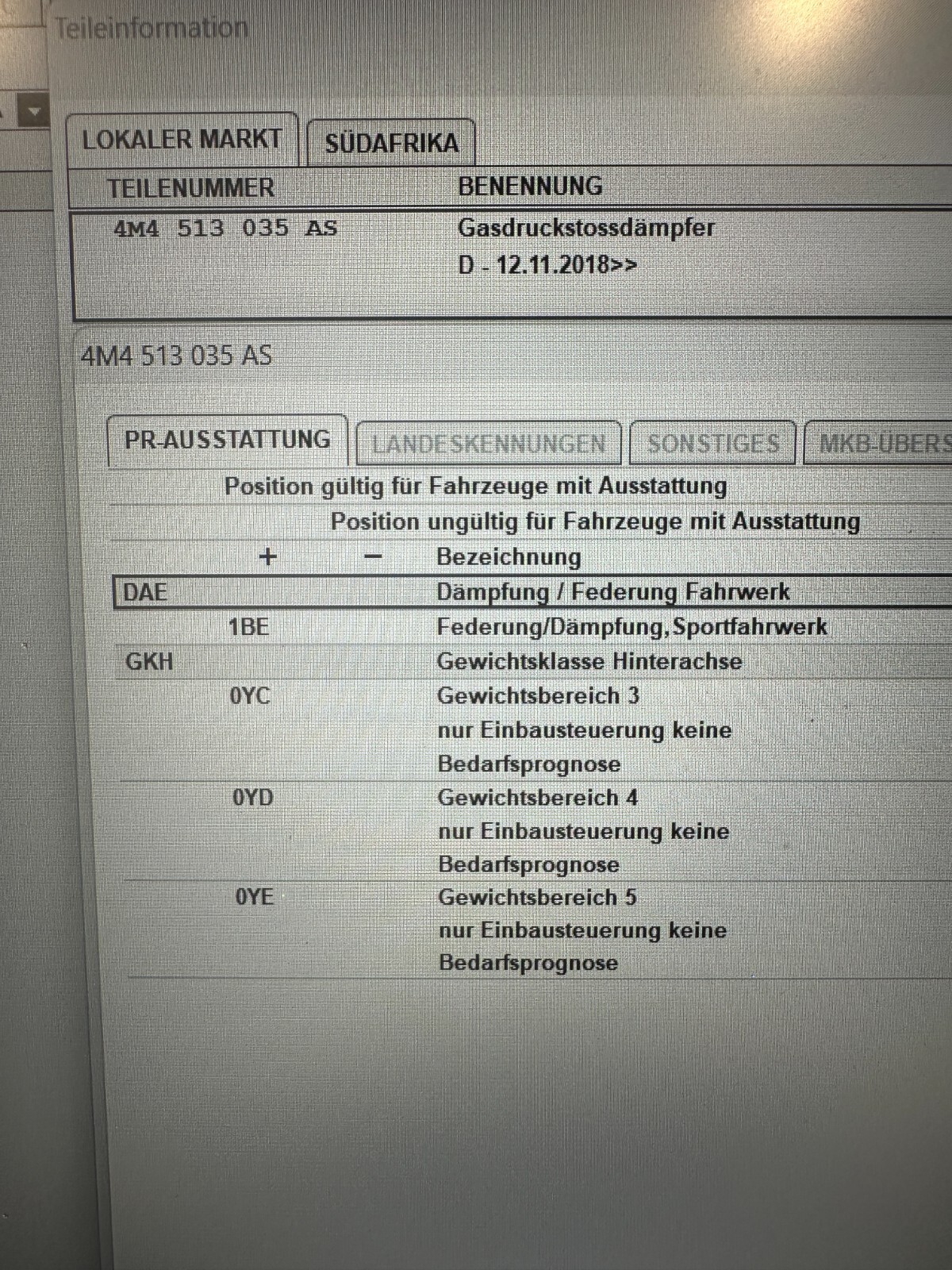 4M4513035AS VW TOUAREG CR7 GASDRUCKSTOSSDAMPFER KOMPLET NEU ORIG. 4M4513035AS