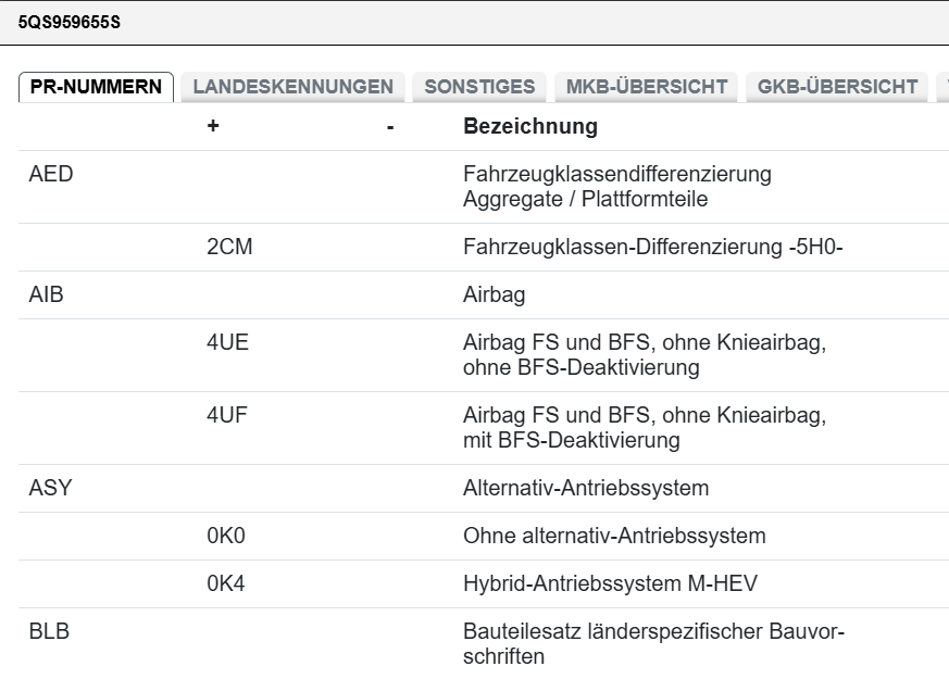 überprüfen Sie vor dem Kauf den Einzelteilcode, ob das