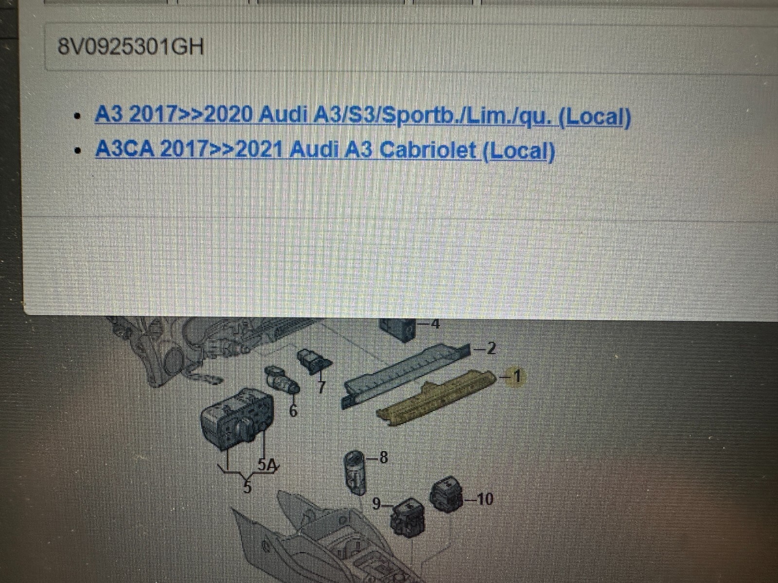 AUDI A3/S3/RS3 MEHRFACHSCHALTER 8V0925301GH FAST NEU DEMONT VOM TEST WAGEN ORIG.