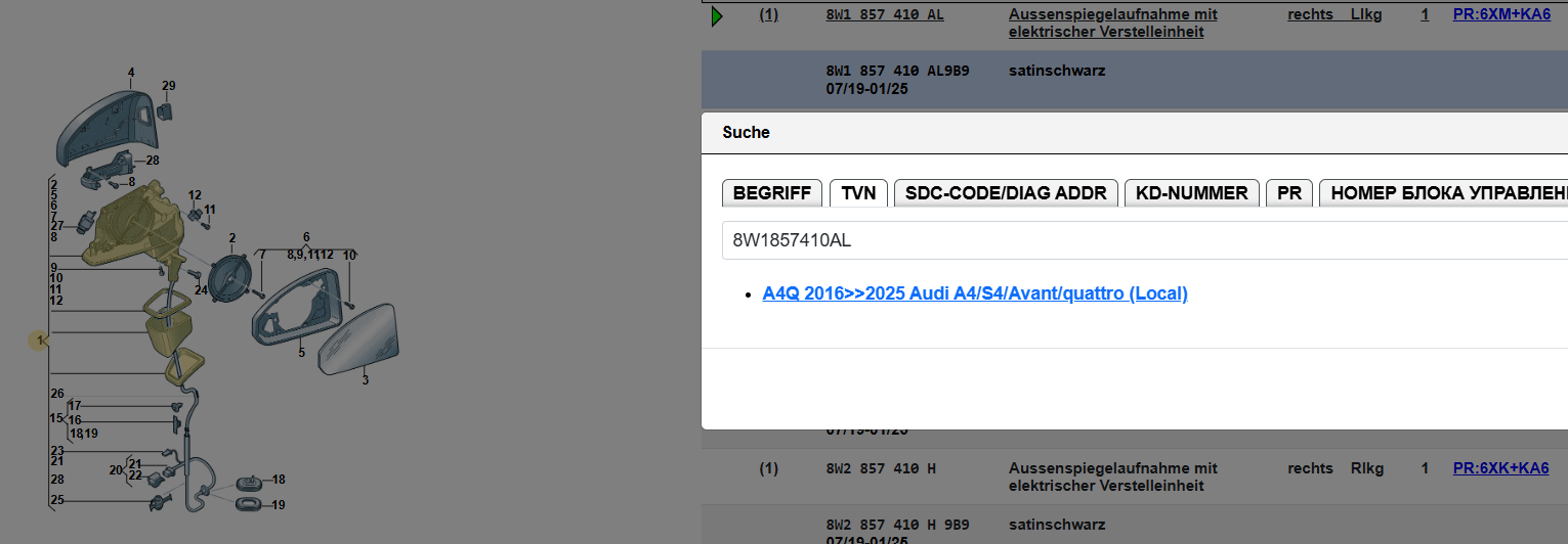 AUDI A4 AUßENSPIEGEL MIT KAMERA ELEKTRISCH VORN RECHTS 8W1857410AL Orig.AUDI NEU