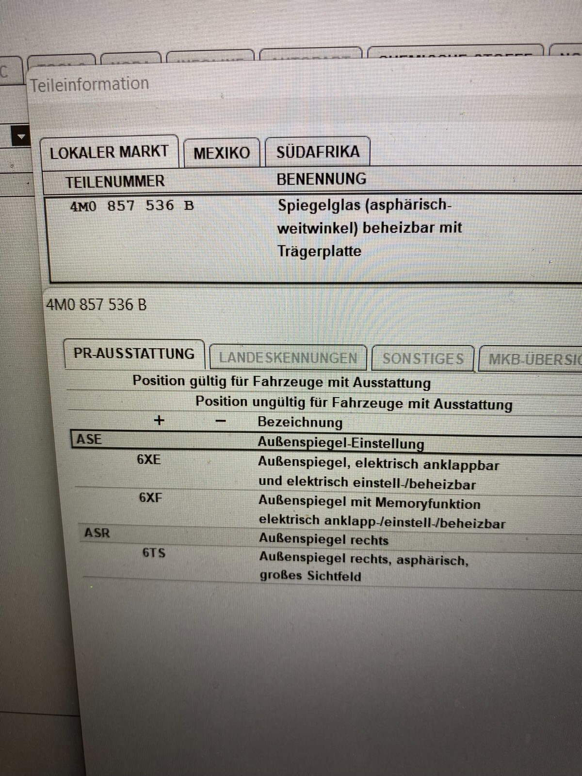 AUDI Q5 Q7 SPIEGELGLAS AUßENSPIEGEL GLAS R. BEHEIZT 4M0857536B ORIG. AUDI TEIL
