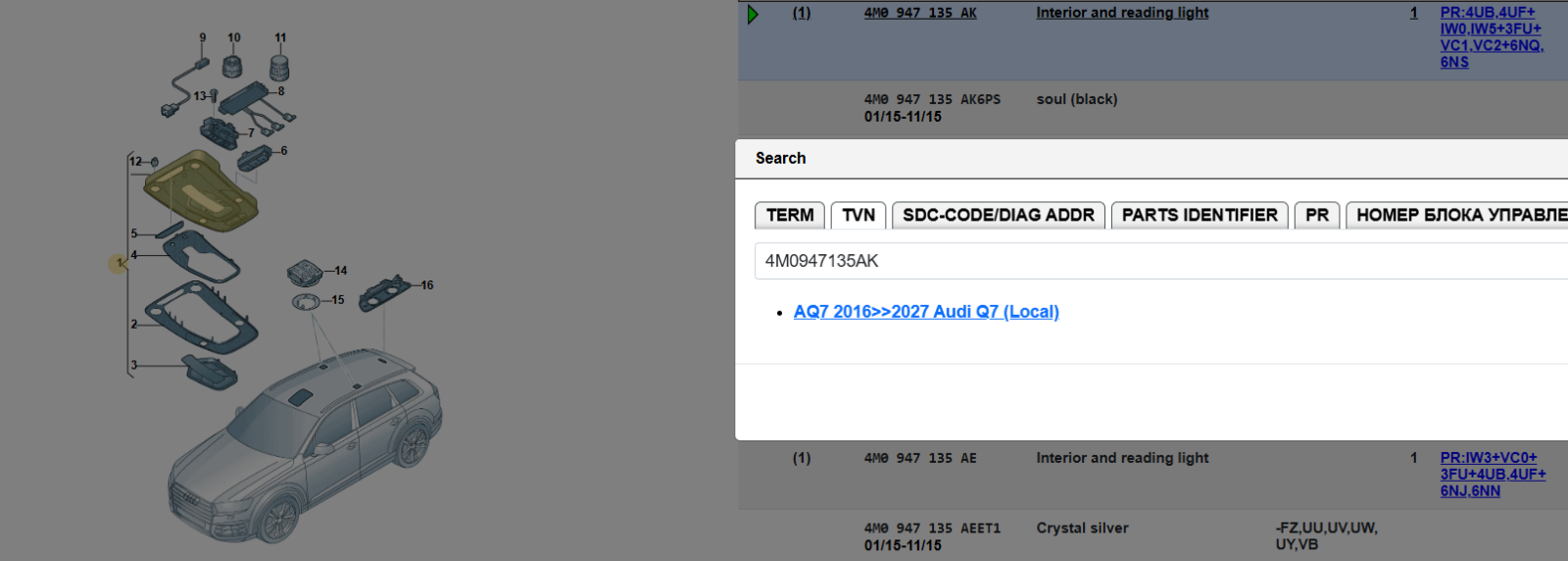 AUDI Q7 4M INNEN RAUM DACH BELEUCHTUNG 4M0947135AK 4M0959719A 4M0959613B ORIG. !