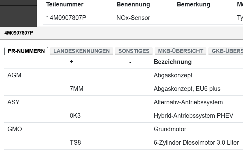 überprüfen Sie vor dem Kauf den Einzelteilcode, ob das
