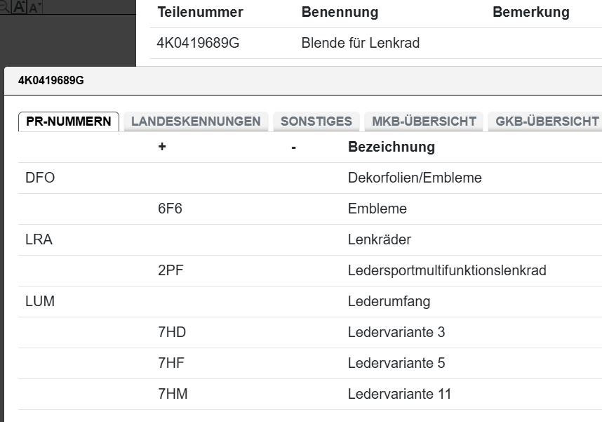 überprüfen Sie vor dem Kauf den Einzelteilcode, ob das