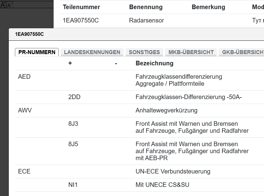 überprüfen Sie vor dem Kauf den Einzelteilcode, ob das