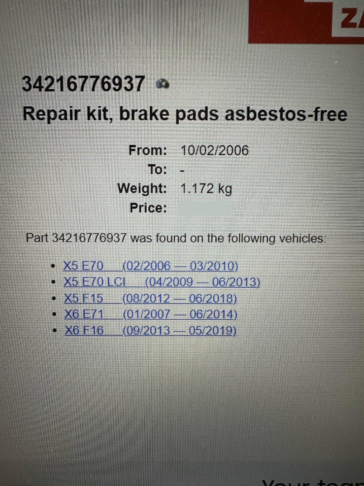 Bitte überprüfen Sie vor dem Kauf den Einzelteilcode, ob das Ersatzteil in Ihr Fahrzeug passt.