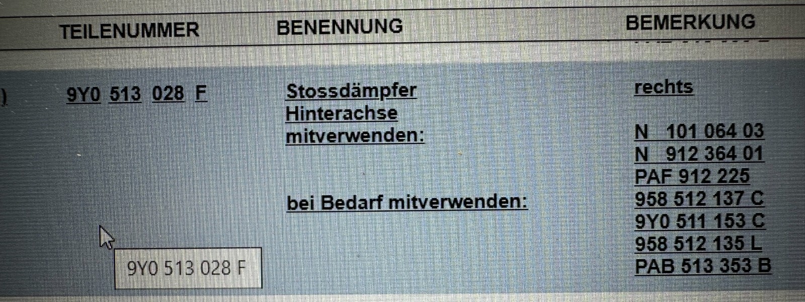 Bitte überprüfen Sie vor dem Kauf den Einzelteilcode, ob das Ersatzteil in Ihr Fahrzeug passt.