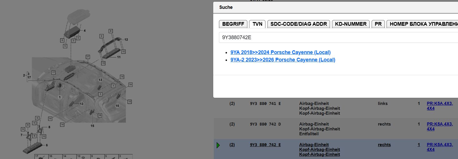 PORSCHE CAYENNE 9YA DACH SICHERHEITSVORHANG SRS 9Y3880741E + 9Y3880742E ORIG NEU