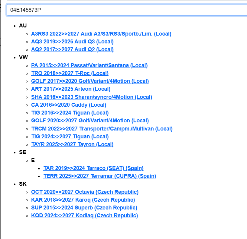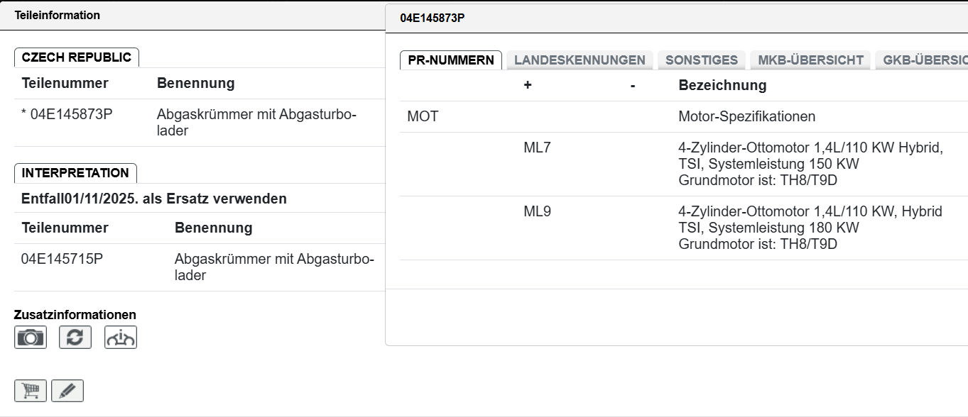überprüfen Sie vor dem Kauf den Einzelteilcode, ob das
