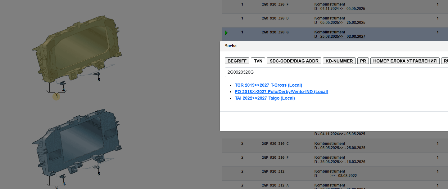Bitte überprüfen Sie vor dem Kauf den Einzelteilcode, ob das