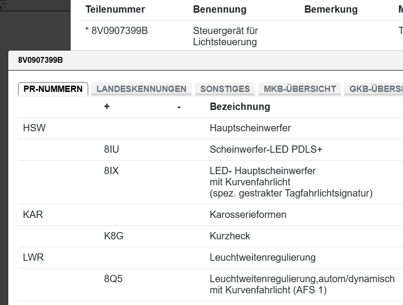 überprüfen Sie vor dem Kauf den Einzelteilcode, ob das Ersatzteil
